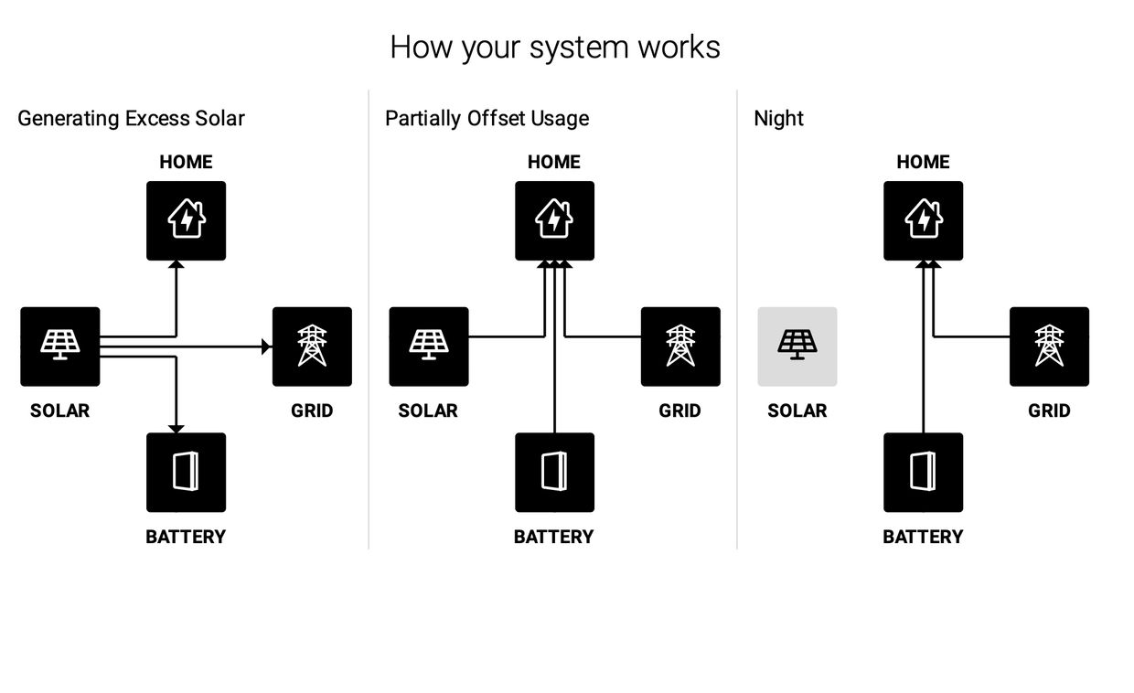 Your solar panels turn sunlight into electricity, and the control system manages it all. Any extra energy that you don't use gets stored in a battery to use later or sell back to the power grid. This helps you get the most out of your energy.